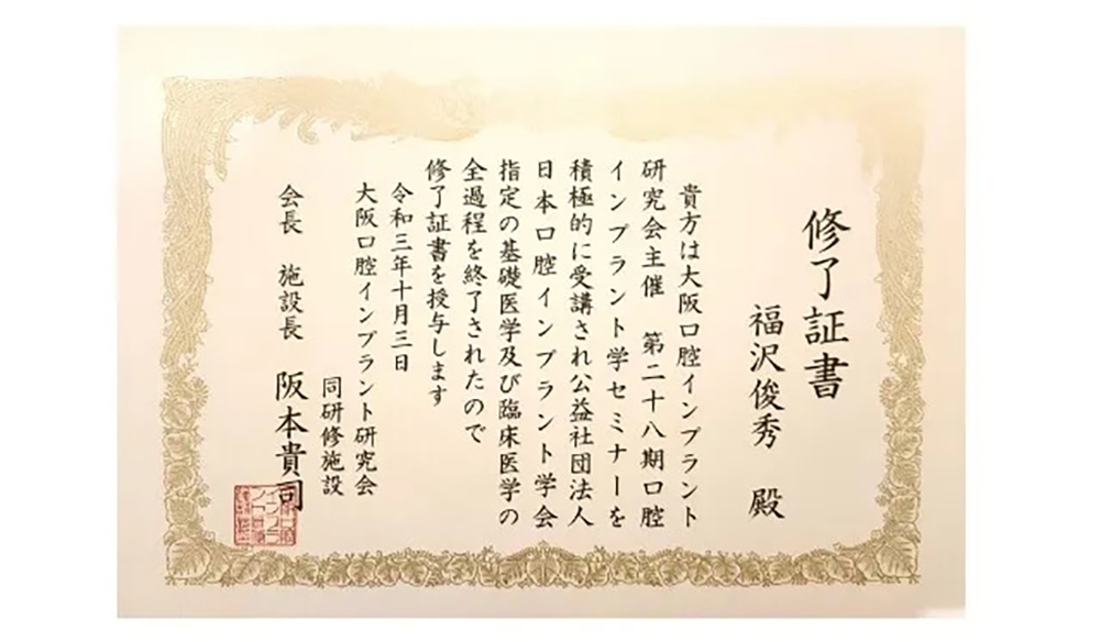 - 日本口腔インプラント学会認定医研修プログラム終了
